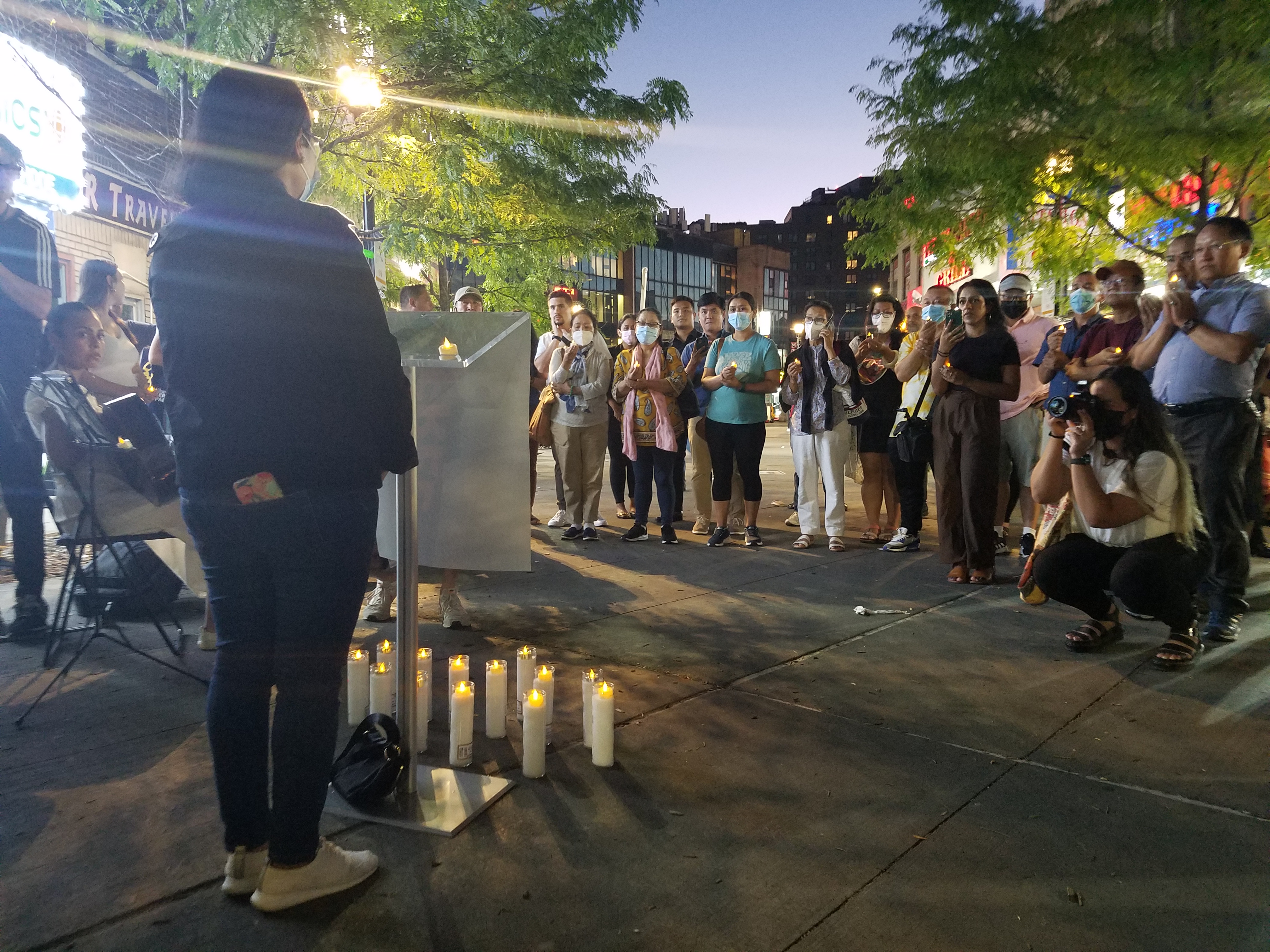 Candlelight vigil in Jackson Heights, Queens on September 1, 2022, the one-year anniversary of Hurricane Ida, which killed 16 people in New York, including a two-year-old and his parents in their basement apartment. Photo: Amy Yee